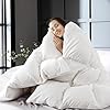 • 【Soft & Fluffy for Ultimate Comfort】 – Filled with a blend of 90% white goose feather fiber and 10% white goose down fiber, this comforter offers luxurious softness and bulkiness. The sewn-through box construction ensures an even distribution of fill, providing exceptional warmth without the weight. It absorbs sweat to cool you down while trapping body heat for cozy warmth.